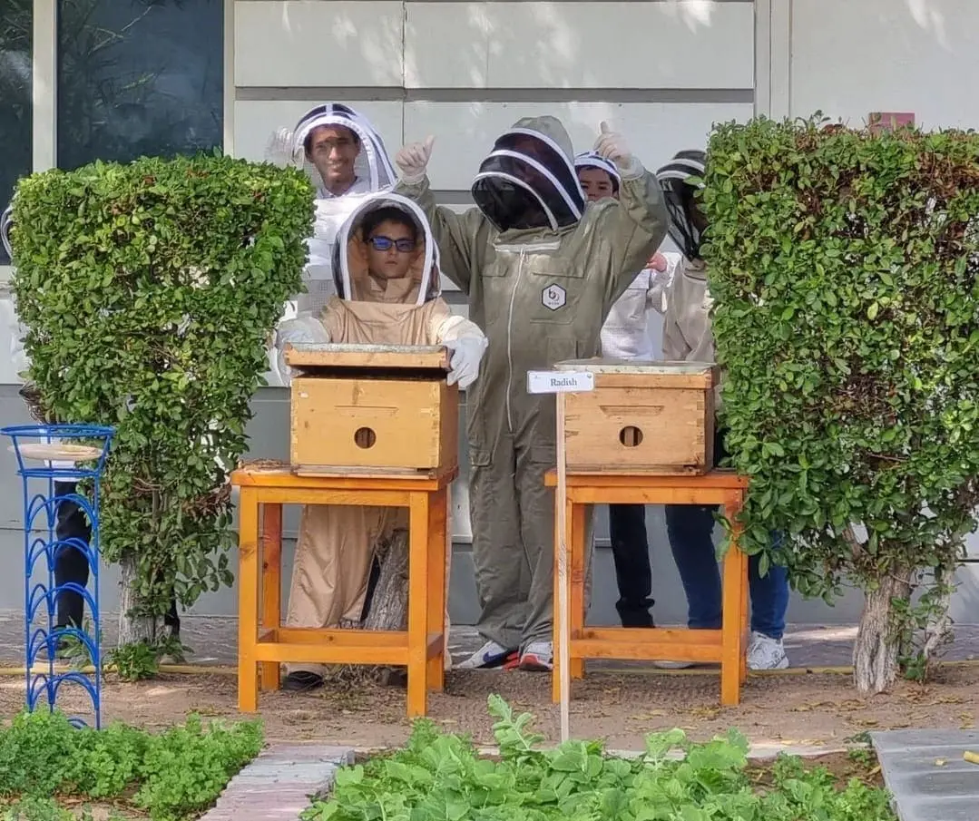 Thriving bee hives, fostering local biodiversity and pollination while producing school-made honey, supporting learning about our interconnectedness with nature.